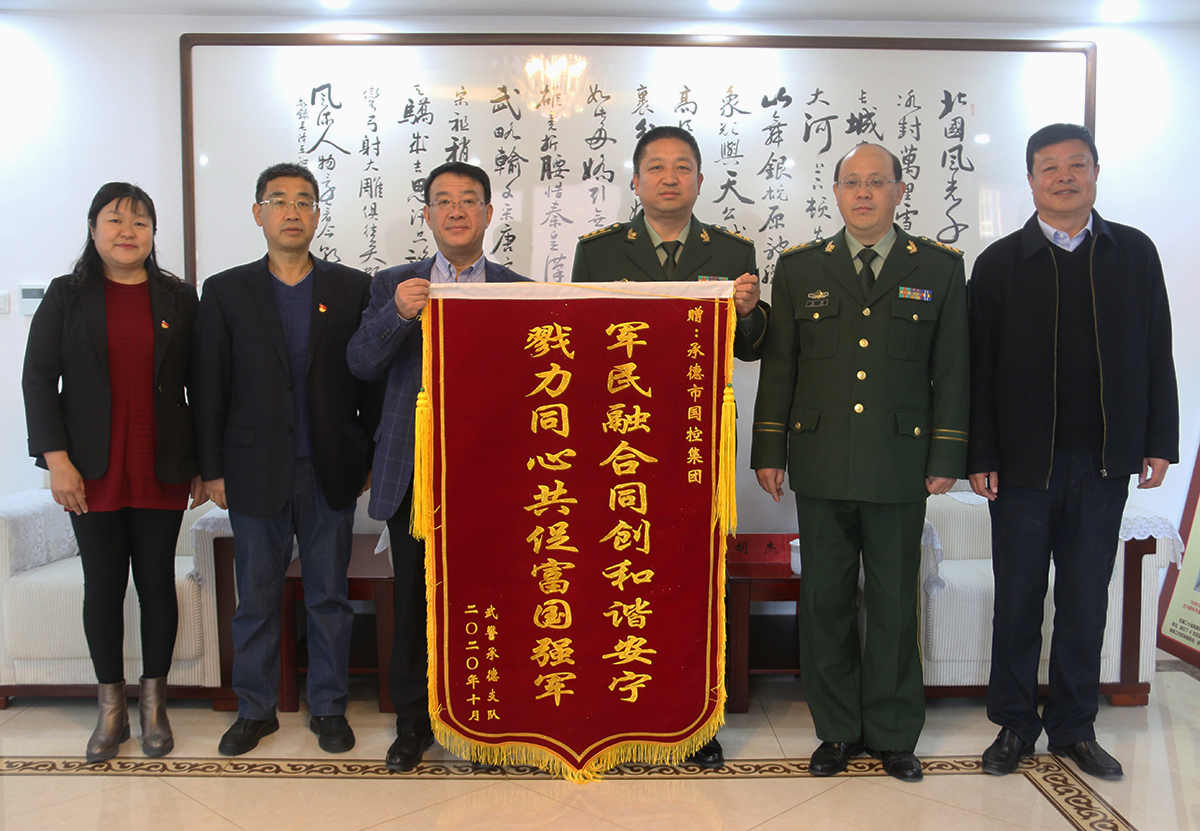 11月5日上午,武警承德支隊支隊長馬效國、政委姜順將“軍民融合同創(chuàng)和諧安寧,勠力同心共促富國強軍”的錦旗送到集團公司,感謝集團公司對武警承德支隊的關心與支持。集團公司黨委書記、董事長張建軍,總經(jīng)理徐俊儒,監(jiān)事會主席唐春民,智能停車場公司執(zhí)行董事胡杰等同志參加會見。