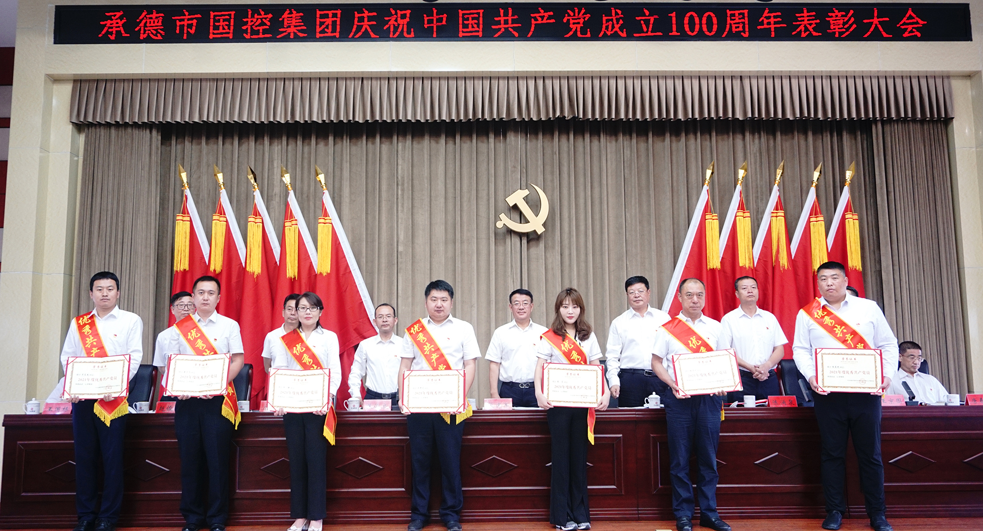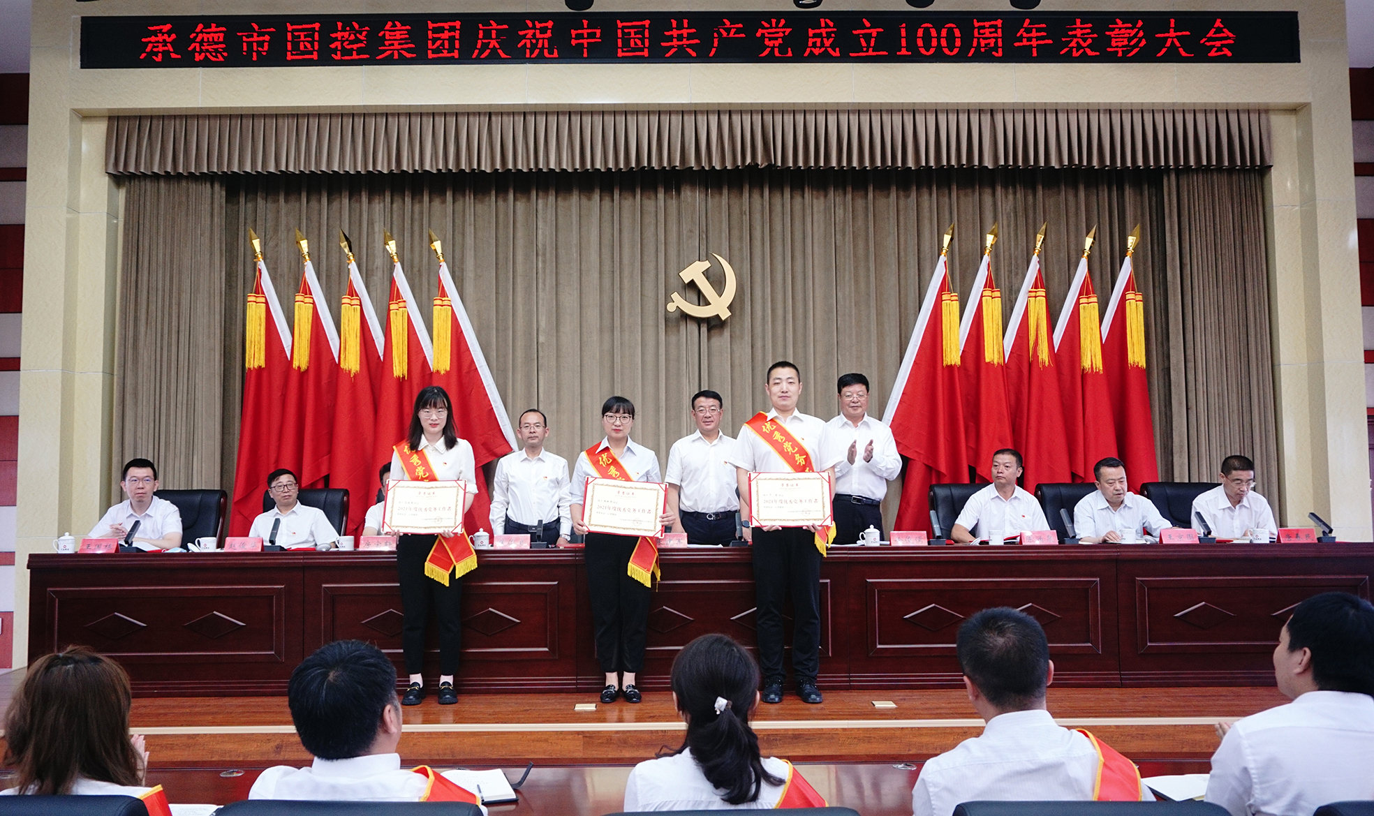 表彰大會氣氛隆重?zé)崃遥髸谌珗銎鹆⒏叱獓杪曋虚_幕。集團(tuán)公司黨委決定,授予許平凡等7名共產(chǎn)黨員“優(yōu)秀共產(chǎn)黨員”稱號,授予胡斌偉等3名黨務(wù)工作者“優(yōu)秀黨務(wù)工作者”稱號。現(xiàn)場向先進(jìn)個人頒發(fā)了證書,并向參加“慶祝中國共產(chǎn)黨成立100周年書畫攝影大賽”獲獎的人員頒發(fā)了榮譽證書。