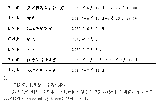 2020 年6 月 17日至 2020 年6月 23 日 16:00 在鴻雅招聘網(wǎng)(http://www.cdhyjob.com/)、鴻雅微信公眾號、國控集團官方網(wǎng)站等發(fā)布招聘公告。